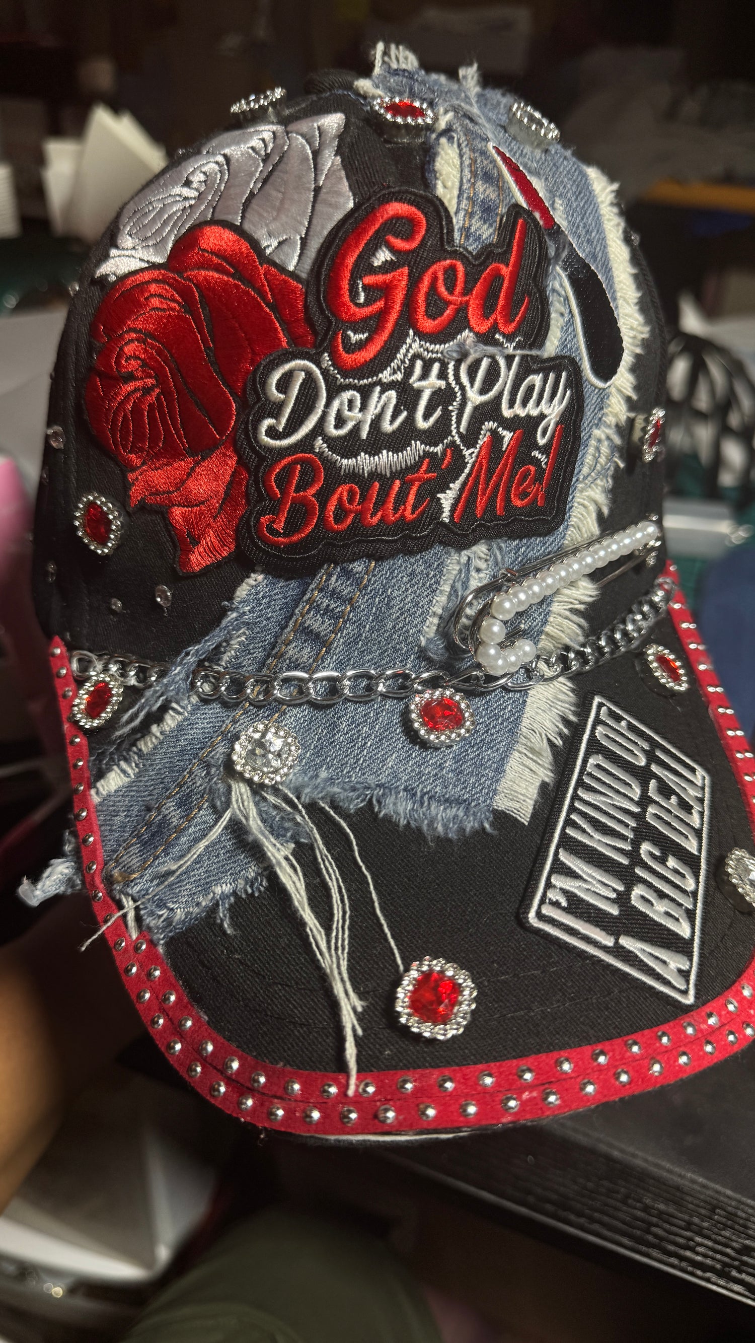 Handcrafted custom junk hats with patches, pins, and embellishments. Perfect for rodeos,...